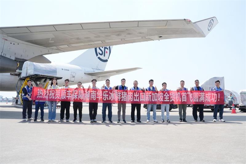 3月12日,由湖南新五丰股份有限公司(以下简称“新五丰”)与湖南华乐食品有限公司(以下简称“华乐食品”)共同组织的13.22吨冷鲜猪肉出口新加坡全货机首航任务圆满完成。货物由顺丰航空全货机承运,历经数小时飞行后顺利抵达新加坡并完成入库,此举标志着湖南正式打通冷鲜猪肉对新加坡出口的全链条通道。