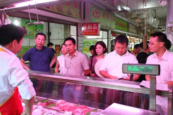 上午先后走访了新五丰优鲜家乐福芙蓉广场店、清水塘农贸市场店、望月湖加盟店、溁湾镇新一佳店,正值销售集中时段实地感受市场脉博,询问了解存在困难,需要解决问题。下午在浏阳永安分公司,调研环保改造升级进展情况,之后经淋浴更衣后进生产区,看望生产一线职工,详细了解生产情况,与永安分公司生产管理人员共同举行座谈会,探讨生产经营情况,解决实际困难。