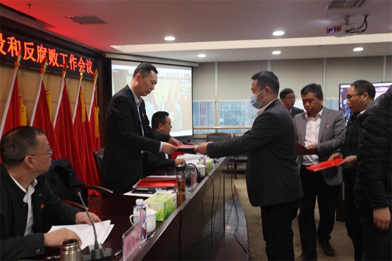 新五丰党委委员、领导班子成员、总部部室及分子公司中层副级以上管理人员、全体党员及关键岗位人员等340余人参与此次会议。会上,各支部书记、分管领导向何军递交了2021年《党风廉政建设目标责任书》。