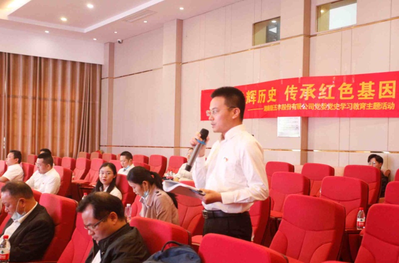 为深入贯彻落实习近平总书记在党史学习教育动员大会上的重要讲话和考察湖南重要讲话精神,从党的光辉历史中汲取砥砺奋进的精神力量,5月21日,湖南新五丰股份有限公司(以下简称“新五丰”)党委书记、董事长何军以《“骆驼精神”照亮高质量发展新征程》为题,为党员干部讲授专题党课,开展“千名书记讲潇湘红色故事”党课活动。