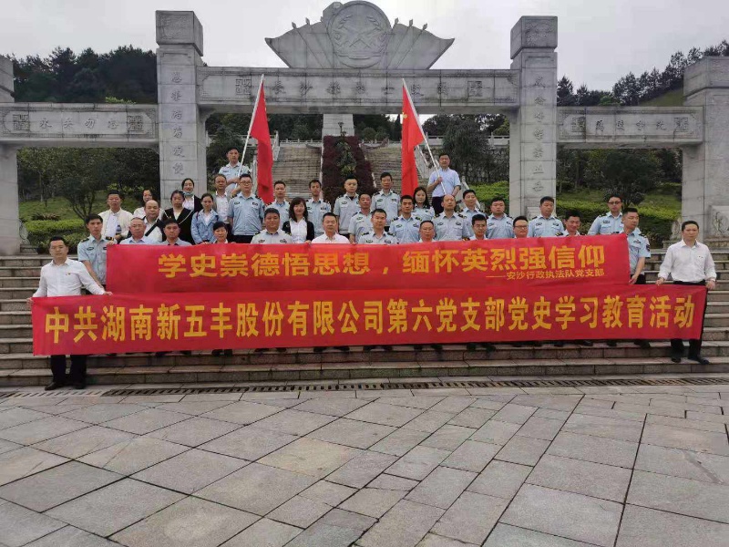 在建党100周年之际,为切实加强爱国主义情怀和革命传统教育,弘扬英烈精神,传承红色基因,5月28日,新五丰六支部与安沙行政执法队党支部一行50余人来到长沙县金井镇烈士陵园组织开展“学史崇德、不断提升共产党人的精神境界”主题党日活动,共同践悟入党初心,激发昂扬斗志。