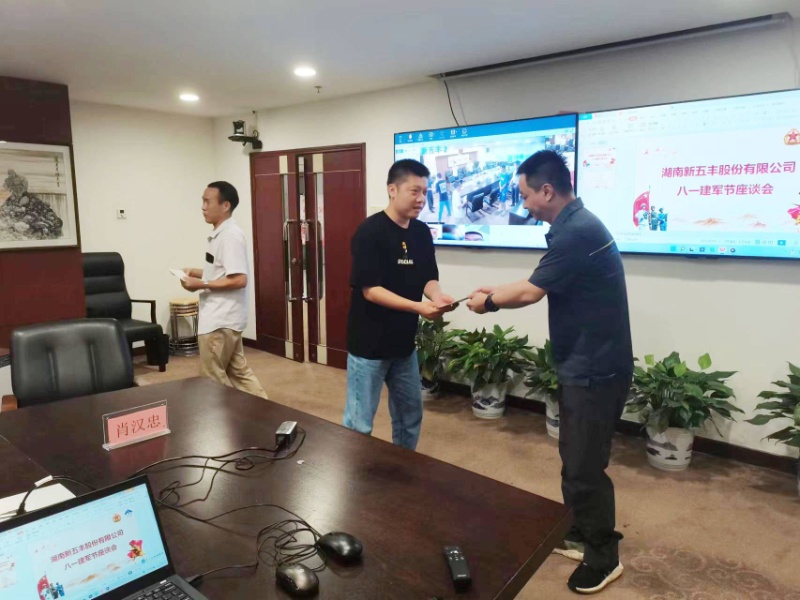 7月29日,在中国人民解放军建军95周年来临之际,湖南新五丰股份有限公司(以下简称“新五丰”)组织召开“八一”建军节座谈会,向公司军转干部及退伍复员军人致以节日慰问,公司党委委员、副总经理毛鸥参加会议。