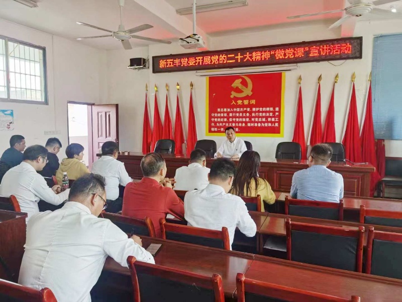 在村部会议室,何军聚焦“学习宣传贯彻党的二十大精神”主题,为新五丰党员干部讲授了“微党课”。他强调,迈上新征程,要以习近平新时代中国特色社会主义思想为指引,全面深入学习贯彻党的二十大精神,积极响应党的号召,牢记国企使命,勇担社会责任,切实把握国家战略需要,把国家战略与公司业务深度融合。