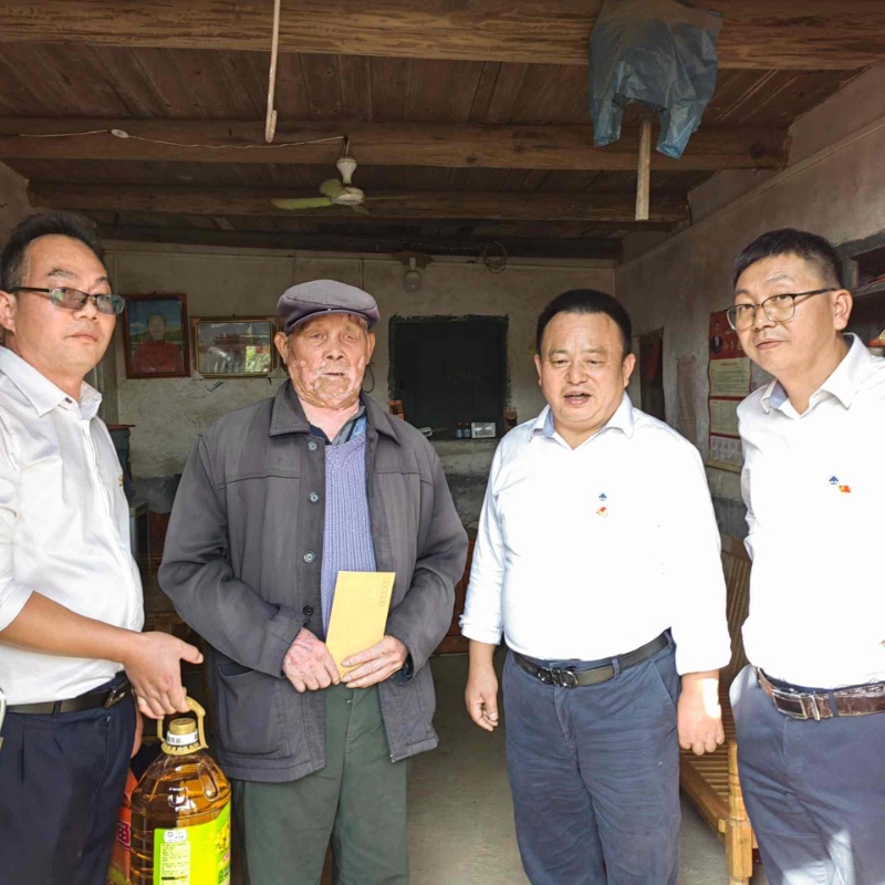 在湖南农业发展投资集团乡村振兴工作队队长喻友培等人的陪同下,何军一行现场察看了竹渚村基础设施和产业发展等情况,在交流中了解乡村振兴情况,并入户开展帮扶慰问。在帮扶对象家中,何军、刘艳书与他们拉起家常,详细询问他们的家庭收入情况、健康状况、子女工作学习情况以及面临的困难,为他们出谋划策,并代表公司党委向他们送去慰问金和食用油、大米等生活物资以及美好的祝愿。