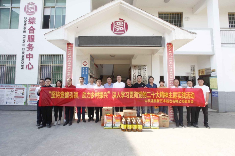 为全面学习贯彻党的二十大精神,持续巩固“我为群众办实事”实践活动的成果,按照省委组织部《开展“一课一片一实践”活动提高组织生活质量工作方案》的相关要求,11月1日,湖南新五丰股份有限公司(以下简称“新五丰”)党委书记、董事长何军,党委副书记、副董事长、总经理刘艳书带队前往郴州市宜章县岩泉镇竹渚村开展“坚持党建引领、助力乡村振兴”深入学习贯彻党的二十大精神主题实践活动。