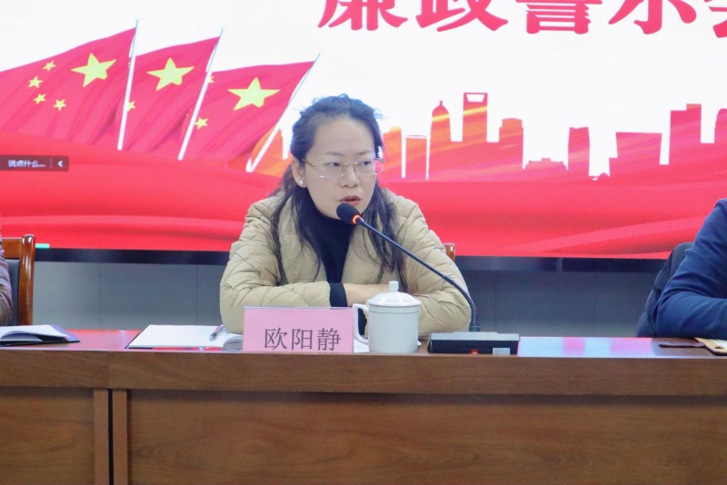 欧阳静以“廉洁自律、廉洁从业”为主题,与大家分享了三点感悟:一是加强自身建设,筑牢廉洁从业的思想堡垒。所有党员、领导干部和职工,都要强化责任担当,做好自我监督和职能监督,坚决履行“一岗双责”,坚决落实好各项工作任务安排。二是注重组织引导,营造风清气正的干事氛围。希望与会成员能够认真查看2022年度廉政警示教育的“一周通报”,越是关键岗位人员,越要提高思想认识,严明纪律要求,深化纪律教育,强化责任意识,做到“以案为鉴、以案示警、以案明纪”。三是抓实制度执行,挥好执纪监督的法则利剑。各级干部要带头廉洁自律,形成监督合力,抓在日常、严在经常,切实做好监督,履好职责,坚决同各种不正之风和腐败现象作斗争,当好良好政治生态和社会风气的引领者、营造者、维护者,做到在其位谋其职,任其职担其责,共同培育风清气正的政治生态土壤。
