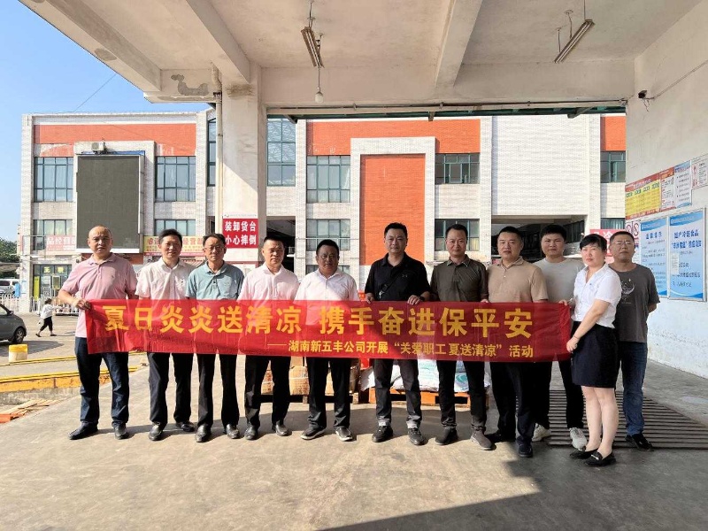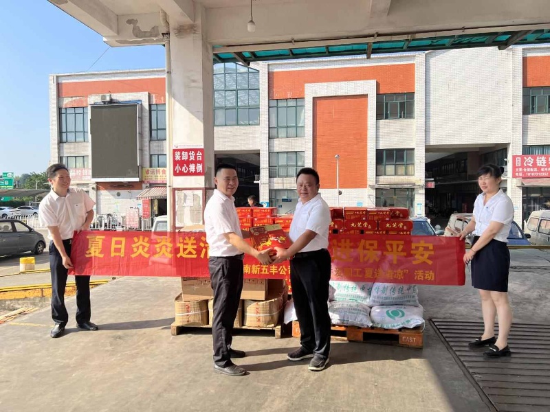 为进一步做好防暑降温工作,切实维护生产一线职工身体健康,并学习践行“浦江经验”所蕴含的立场、观点、方法,8月4日,湖南新五丰股份有限公司(以下简称“新五丰”)党委副书记、副董事长、总经理刘艳书赴湖南长株潭广联生猪交易市场有限公司(以下简称”广联公司”)开展“关爱职工·夏送清凉”慰问活动并下沉接访,新五丰党委委员、副总经理、工会主席毛鸥陪同。
