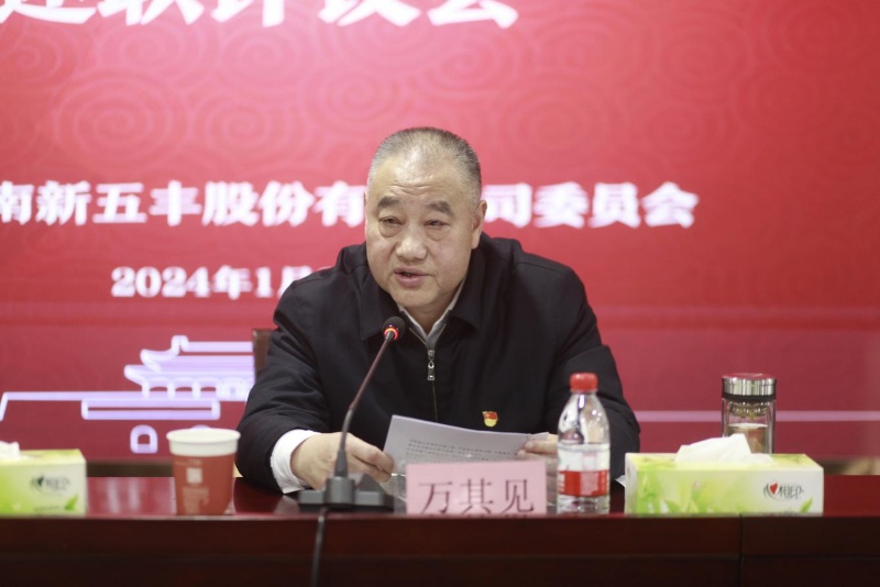 1月23日,湖南新五丰股份有限公司(以下简称“新五丰”)召开2023年度党支部书记抓党建工作述职评议会议,充分发挥考核“指挥棒”“风向标”“助推器”作用,推动党的建设各项工作再上新台阶。湖南农业集团党群综合部副部长张胜辉到会指导,新五丰党委书记、董事长万其见逐一点评并作总结讲话,会议由新五丰党委副书记、副董事长、总经理朱永胜主持。