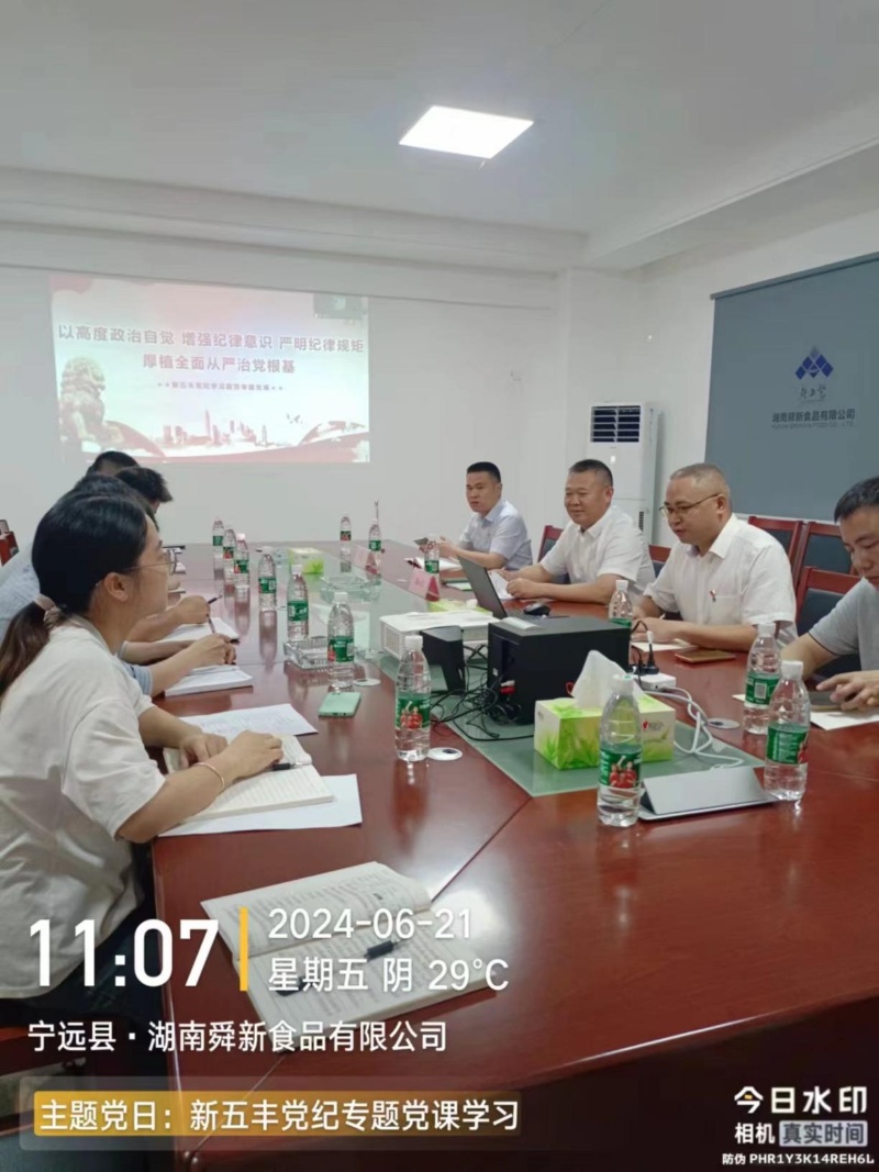 为深入学习领会习近平总书记关于党纪学习教育的重要讲话和重要指示精神,严明党的政治纪律和政治规矩,推动党纪学习教育走深走实,6月21日,湖南新五丰股份有限公司(以下简称“新五丰”)党委副书记、副董事长、总经理朱永胜在舜新联合党支部讲授党纪学习教育专题党课。