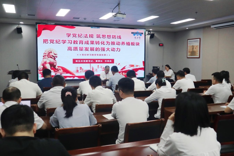 万其见以《学党纪法规 筑思想防线 把党纪学习教育成果转化为推动养殖板块高质量发展的强大动力》为题,回顾了中国共产党推进党的纪律建设的历程与实践经验,从理论层面、思想层面、现实层面深刻阐述了纪律建设的重要性,并解读了新修订《中国共产党纪律处分条例》的重点内容。他强调,要深入学习贯彻习近平新时代中国特色社会主义思想,把开展好党纪学习教育作为统一思想的“定盘星”、推动发展的“指南针”、解决问题的“金钥匙”,聚焦短板治理为核心,坚持以内部确定性应对外部的不确定性的破局之道,为推进养殖板块高质量发展提供良好学习风气和坚强纪律保障。