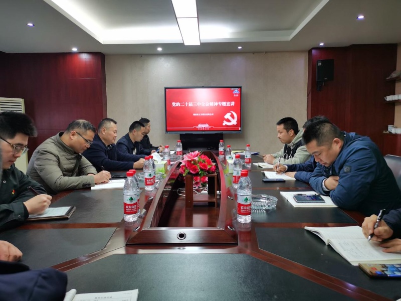 根据湖南新五丰股份有限公司(以下简称“新五丰”)党委统一部署,11月20日,新五丰党委副书记、副董事长、总经理朱永胜到湖南长株潭广联生猪交易市场有限公司(以下简称“广联公司”)宣讲党的二十届三中全会精神。新五丰总经理助理、广联公司党支部书记吴宏飞主持会议。