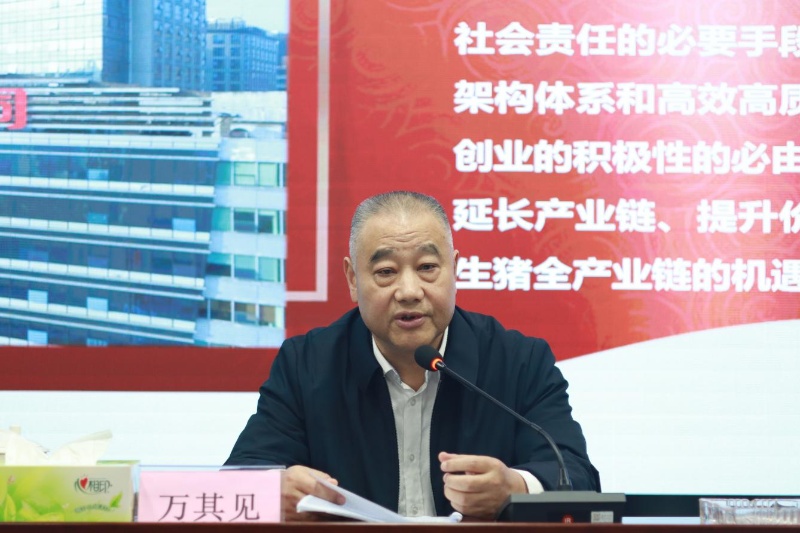 万其见强调,学习好宣传好贯彻好党的二十届三中全会精神,是当前和今后一个时期的一项重大政治任务。要把学习贯彻党的二十届三中全会精神与谋划推动高质量发展、抓好公司当前重点工作紧密结合起来,聚焦主责主业,坚持深化改革,强化使命担当,在推进新五丰高质量发展的新征程上贡献新的更大力量。一是坚持党的领导、加强党的建设,在“矢志不渝、信念如磐”中坚定改革信心。要提高政治站位、建强战斗堡垒、强化正风肃纪,认真贯彻新时代党的建设总要求和新时代党的组织路线,深化基层党建“七强”工程,持续推进党建与生产经营深度融合,科学谋划进一步全面深化改革的思路举措,把党的政治优势、组织优势转化为公司的竞争优势、创新优势和发展优势,同时积极探索“三不腐”贯通融合的路径载体,推动全面从严治党向纵深发展。二是分析发展形势、完善体制机制,在“变中求稳、稳中求进”中明确改革方法。要加强形势分析、坚持降本增效、优化管理机制,加快提升现代企业治理能力,从“规模+效益”向“效益+规模”逐渐转变,聚焦性能提升做好养殖对标管理、营养方案、健康管理和育种体系建设,与时俱进形成适合新五丰实际的先进生产标准和要求。根据区域布局推进区域化管理改革,不断完善薪酬绩效与公司利益考核挂钩的机制,充分激发一线职工干事创业的积极性。三是筑牢发展根基、提升发展质效,在“知重负重、同向同行”中汇聚改革合力。要筑牢安全防线、加快科技创新、谋划高质量发展路径,坚决打好打赢非瘟防控阻击战,着力推动环保工艺集成和能力建设,加快打造标准化绿色高效养殖体系,围绕重点技术攻关,实现养殖管理的智能化、实时化、可视化、闭环化。坚决贯彻“提性能、降成本、优生产、拓市场、强管理、增效益、保安全”的指导思想,在全力以赴实现年度目标任务的基础上,科学制定符合实际、富有前瞻性的养殖高质量发展蓝图。