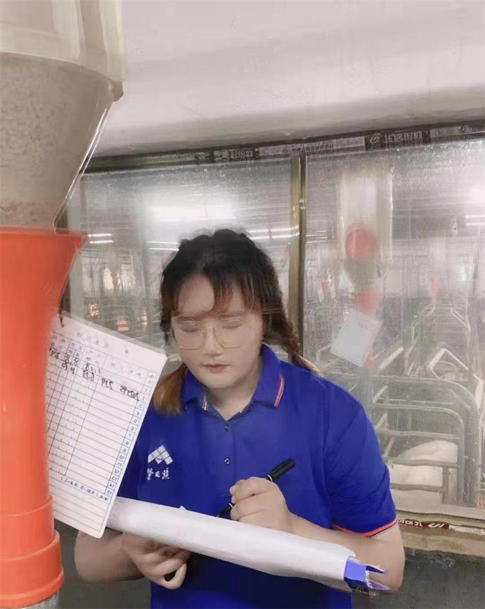 团结是加快成长步伐的动力“加速器”。邓冰凌所在的猪场除了团队氛围浓厚,还非常重视年轻团队发展和员工的人生规划,这给了他们很大的发展空间。从2020年10月正式接手家家康的对标管理,监控场内生产问题以来,邓冰凌作为场内一个接触生产的劳动力,除了日常做好猪舍检查外,还积极帮助其他部门,在产房主管休假时到产房进行代班,负责产房的日常管理;安排场内销售仔猪前的采血工作,按照要求采血等血液分层后将血清倒出,并寄出去;在仓管休假时还要负责搬运到场物资,并进行盘点、消毒、整理入库。在不到一年的时间里,邓冰凌扫过猪粪、配过种、接过产、做过仓管,一直到接触全面的生产管理,虽然中途也犯过错误,但场内的领导和同事都对她十分宽容,以鼓励的方式促进邓冰凌的成长,在她顺利完成一件工作后,会毫不犹豫夸赞,这给了邓冰凌更多的信心,也让其更坚定了走生产路线的决心。
