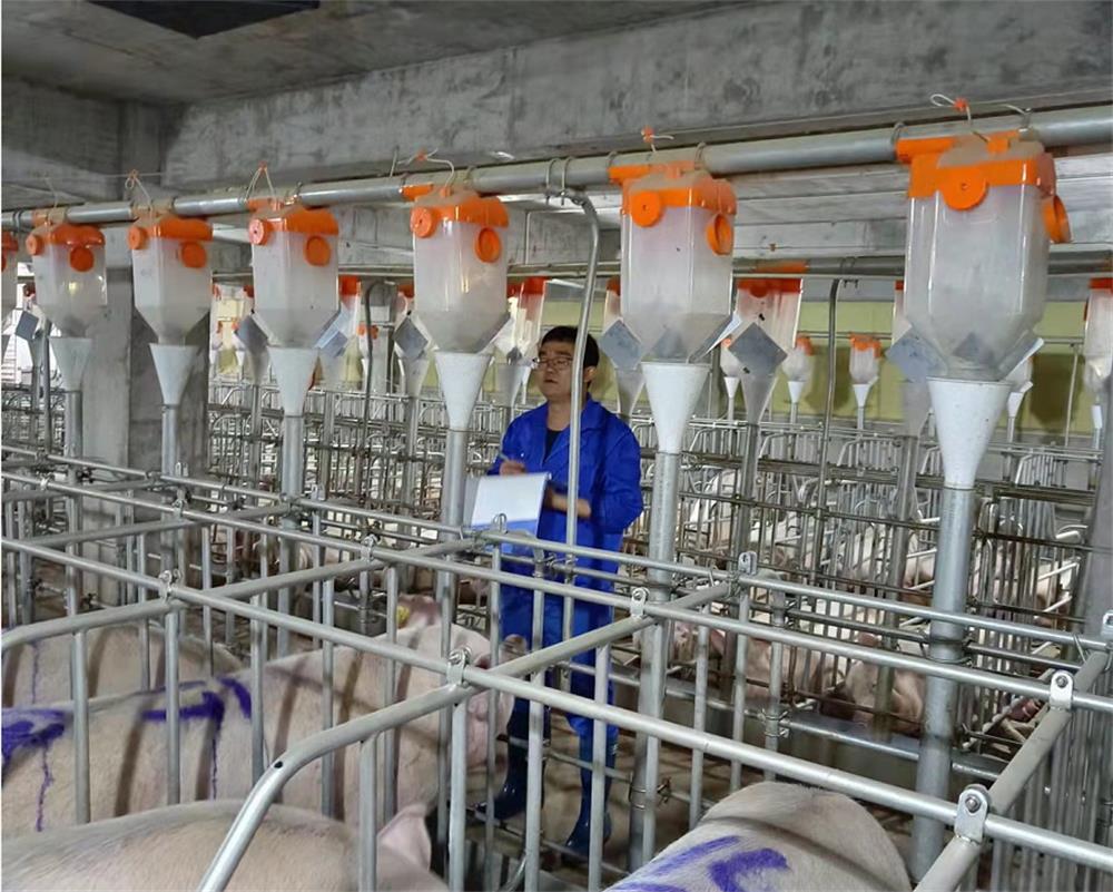 领导的眼光显然不会错,黄棚飞身上这股执拗劲儿自然是这项任务的不二人选。“每天下午开始,就会有猪车从育肥场陆续开到这边来,每辆大概有100多头母猪。”据场长武腾飞回忆,当时员工们每天都要负责这五、六趟猪车的猪群转运,而这都需要黄棚飞现场指导。面对一百多公斤重一只的母猪,就算他亲自率队赶猪进场,每天也要忙到下半夜。黄棚飞考虑到大家伙的精力有限,就将所有员工分为两班倒,而他自己每天忙活好了赶猪工作,还要在楼房里一层一层巡视、观察、记录转入母猪的情况,保障猪只的健康,场内场外一手抓的工作性质让他那段时间没睡过一个安稳觉。终于,在场长和他的带领下,这项艰巨的任务得以完美收官。黄棚飞仰望着这栋顺利投产的高耸楼房,顿时觉得充满了生气。