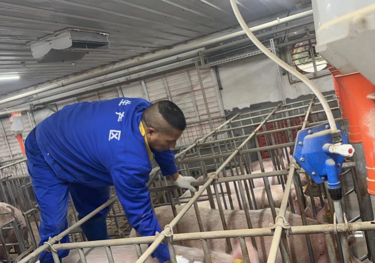 工欲善其事,必先利其器。为了让员工更快熟悉各项生产流程,晟峰场采取老带新的模式,对刚刚进入养殖行业的“小白”手把手教学、培训,每周定期开展现场实操演练,教新员工调料、查情、配种、冲宫等工作。2023年,仅是从技术员岗提干到主管岗的同志就有五位。