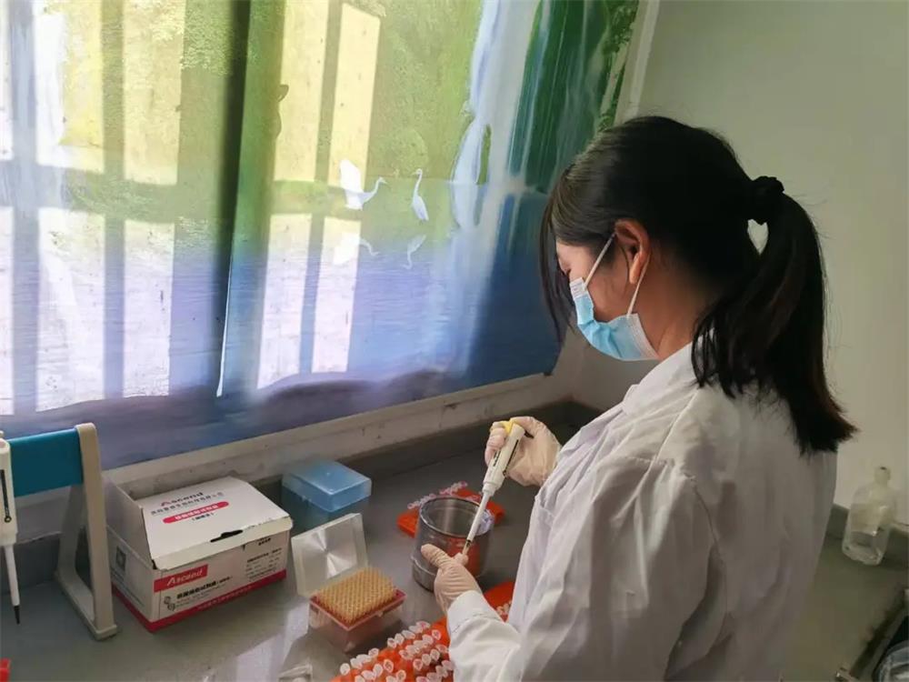 实验室里,一件件透明的采样袋整齐排列在工作台上,临湘天心种业有限公司的实验员程慧正目不转睛地盯着PCR检测仪,观察着样本的非瘟检测结果,汗水不时从她的侧脸滑落……